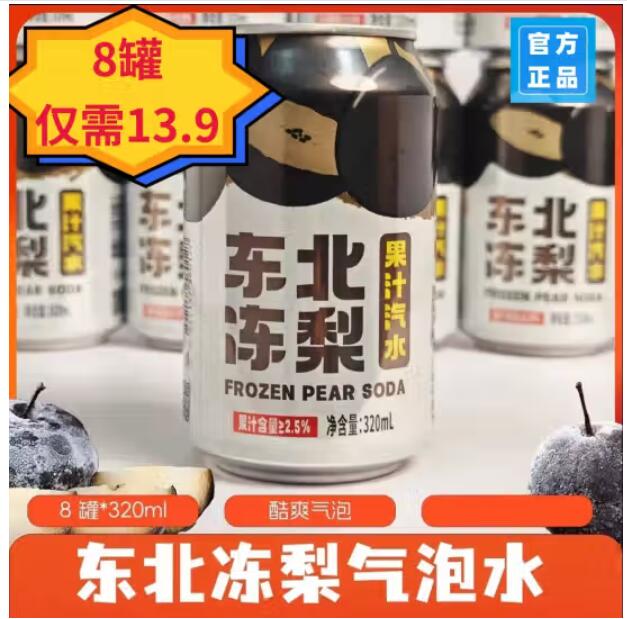 商品名称:沈大东北冻梨味汽水320ml荔枝菠萝百香果砂糖橘水果味碳酸饮料老汽水 东北冻梨味320ml*8罐